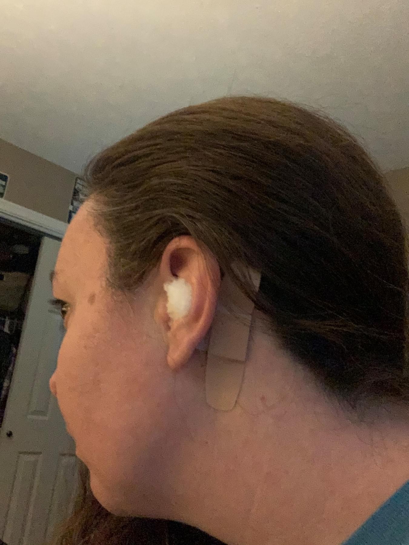 She doesn’t usually stick cotton in her ear for funny photos, but nevertheless, it provides the unexpected element of humor. It was also really great for healing after the cochlear implant was inserted during surgery.